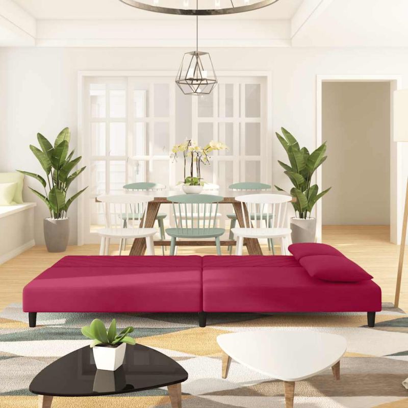 2-местно канапе с две възглавници, виненочервено, кадифе