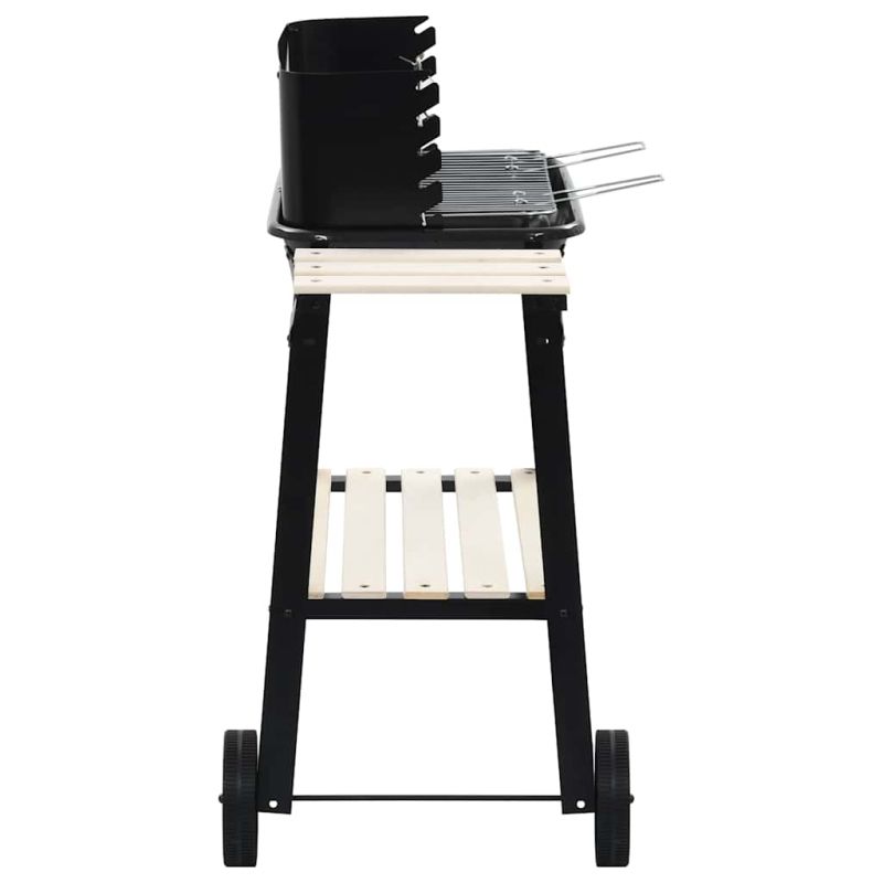 Насладете се на вкусно препечен грил с барбекюто ни на въглища със стойка! Тази стойка за скара има здрава и издръжлива конструкция с компактен дизайн. Лесно можете да регулирате височината на рафта от 71 до 85 см, за да използвате оптимално топлината на въглищата. Разполага още и със страничен и по-нисък рафтове, на които удобно можете да съхранявате аксесоарите си за барбекю. С хромираната решетка за готвене и комплекта за печене вашето барбекю ще бъде лесно и забавно! Оборудвана с 2 колелца, тази скара може лесно да се мести. Не използвайте барбекюто в затворено и или обитаемо пространство, напр. у дома, в палатки, каравани, кемпери, лодки. Опасност от фатален изход поради отравяне с въглероден окис. GPSR