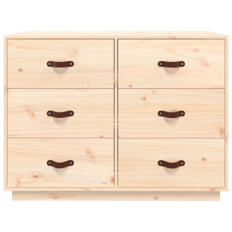 Този дървен бюфет е предназначен да задоволи вашите различни изисквания и е отлично допълнение към вашата стая. Масивна борова дървесина: Масивната борова дървесина е красив естествен материал. Боровата дървесина е с продълговати шарки, а чеповете придават на материала характерния му рустик вид.Стабилна рамка: Дървената рамка осигурява здравина и стабилност.Достатъчно място за съхранение: Бюфетът има 6 чекмеджета, осигуряващи достатъчно място, за да държите нещата организирани и леснодостъпни.Здрав плот: Плотът на този бюфет е идеален за излагане на вашите декоративни предмети, рамки със снимки и саксийни растения. Внимание:За да се предотврати преобръщане, този продукт трябва да се използва с предоставената приставка за стена. Забележка:Всеки продукт се доставя с ръководство за сглобяване в кашона за лесно сглобяване.
