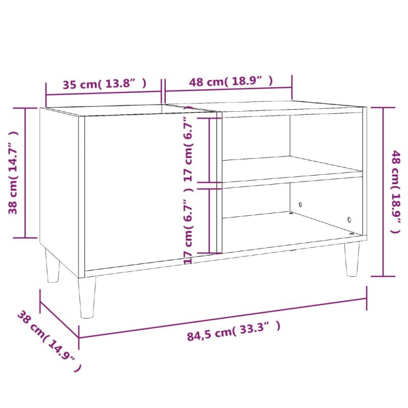Съхранявайте и покажете своите винилови плочи с този практичен и класически шкаф за плочи. Издържлив материал: Инженерната дървесина е с изключително качество с гладка повърхност и се отличава със здравина, стабилност и устойчивост на влага.Достатъчно място за съхранение: Просторният шкаф за грамофонни плочи предлага достатъчно място за съхранение на LP плочи и поддържа вашата музикална колекция добре организирана.Здрав плот: Здравият плот на шкаф за съхранение на винил е идеален за поставяне на вашия плейър или друга електроника.Множество функции: Този шкаф за съхранение на записи може да се използва и като страничен шкаф във всекидневната или шкаф за картотеки в офиса и кабинета.Метални крака: Металните крака добавят индустриален стил към вашия интериор, като същевременно гарантират стабилност.