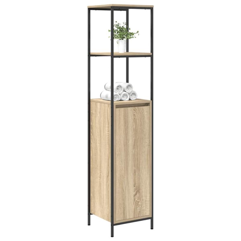 Шкаф за баня с рафтове дъб сонома 36x35x165 cm