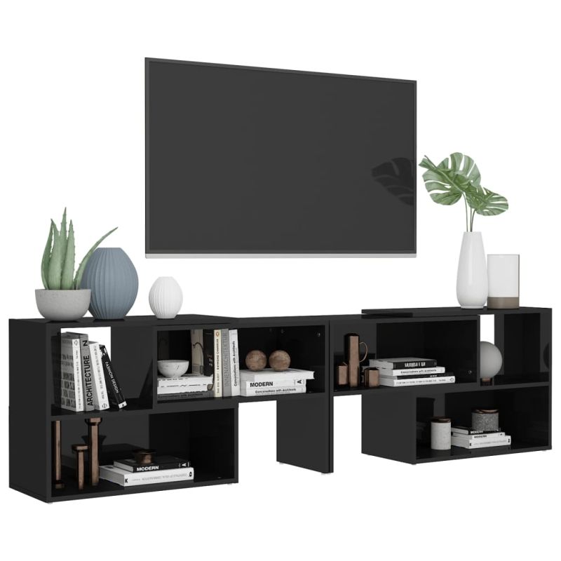 ТВ шкаф, черен гланц, 149x30x52 см, инженерно дърво