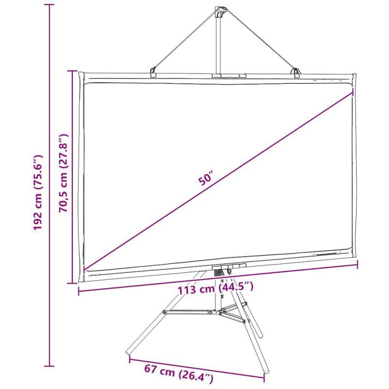 Прожекционният екран е идеален за класни стаи, филми в домашно кино, публични дисплеи и презентации в конферентни зали. Подобрено зрително изживяване: Матовият екран равномерно разсейва проектираната светлина, осигурявайки остри и ясни изображения от всеки ъгъл. Оптимизираната му повърхност абсорбира светлината, за да намали отраженията, осигурявайки постоянно качество на изображението, а черните рамки подобряват фокуса и контраста на картината.Стабилна работа: Стативът осигурява отлична опора и стабилност, като гарантира, че екранът остава здраво на мястото си по време на употреба, което позволява непрекъснато гледане.Преносимо и универсално приложение: Екранът на проектора е идеален за филмови вечери у дома, презентации в офиса или обучение в класната стая, а преносимият му дизайн ви позволява лесно да го местите от едно място на друго, като се адаптирате без усилие към всеки повод.Здрав и издръжлив материал: Изработен от 100% полиестер и подсилен със здрава желязна стойка, този екран на проектора предлага изключителна здравина и дълготрайност, гарантирайки, че ще издържи на редовна употреба.Лесен монтаж: Проектиран за бърза настройка, този ръчен екран на проектора се предлага със статив, който лесно се разгъва и стабилизира екрана. Просто прикрепете екрана към стойките, като използвате предоставените аксесоари за монтаж, и ще бъдете готови за минути.
