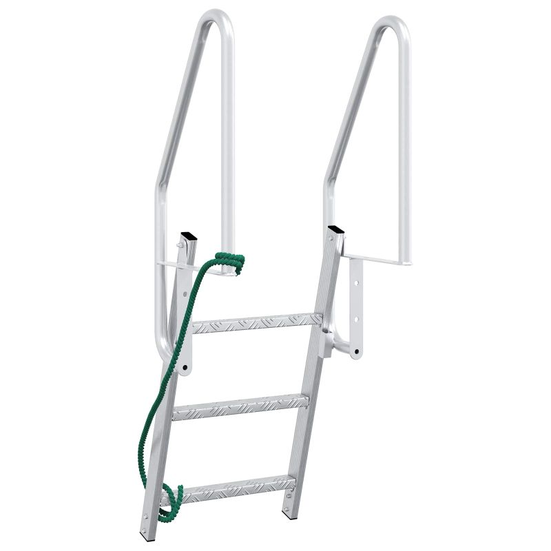 Тази стълба за док е сигурно и практично решение за достъп до твоята лодка или док. С модерен дизайн, се вписва прекрасно в всяка открита среда, осигуряваща лесно качване и безопасни спускания. Може да се сгъва, за да я държиш далеч от водата, когато не е нужна. Материали: Направена от качествен алуминий, тази стълба предлага страхотна устойчивост за дългосрочна употреба в тежки морски условия. Лека е, което прави маневрите и инсталацията лесни, но е и много здрава, поддържайки голямо тегло без огъване или изкривяване. Включени компоненти: В пакета ще намериш 3-степенна стълба, 3-метрово въже за сигурност и комплект болтове и гайки за бърза инсталация. Всичко необходимо е тук, така че не трябва да се притесняваш за липсващи части. Характеристики / Функция: Стълбата може да се сгъва с контролната въже, което намалява риска от замърсяване и износване. Стъпалата, които не плъзгат, предлагат стабилност при употреба, осигурявайки безопасност за всички, които ползват лодките или доковете. Дизайнът ѝ е прост, но супер функционален, който показва модерния ѝ стил и практичност. Препоръчителни употреби: Създадена е за открито, идеална е за мореплаватели, собственици на докове и фенове на морето, нуждаещи се от сигурен достъп до водата. Може да се ползва в различни условия, от частни пристанища до обществени докове, което я прави незаменима. Поддръжка и грижа: Изисква минимална поддръжка; алуминиевата структура я прави устойчива на вредните влияния. Просто изплаквай с прясна вода след солена, за да запазиш добрия вид. Периодични проверки на болтовете са важни за сигурност и надеждност.