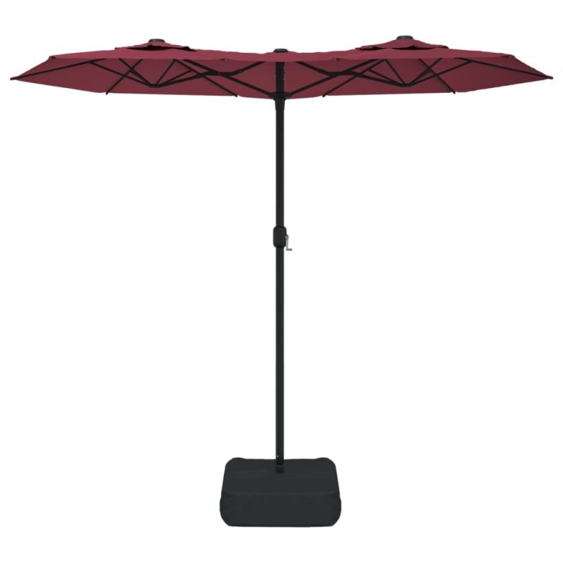 Начало Дом и градина Двор и градина Живот на открито Градински чадъри и сенници Градински чадър с двоен покрив и LED, бордо червен, 316x145 см