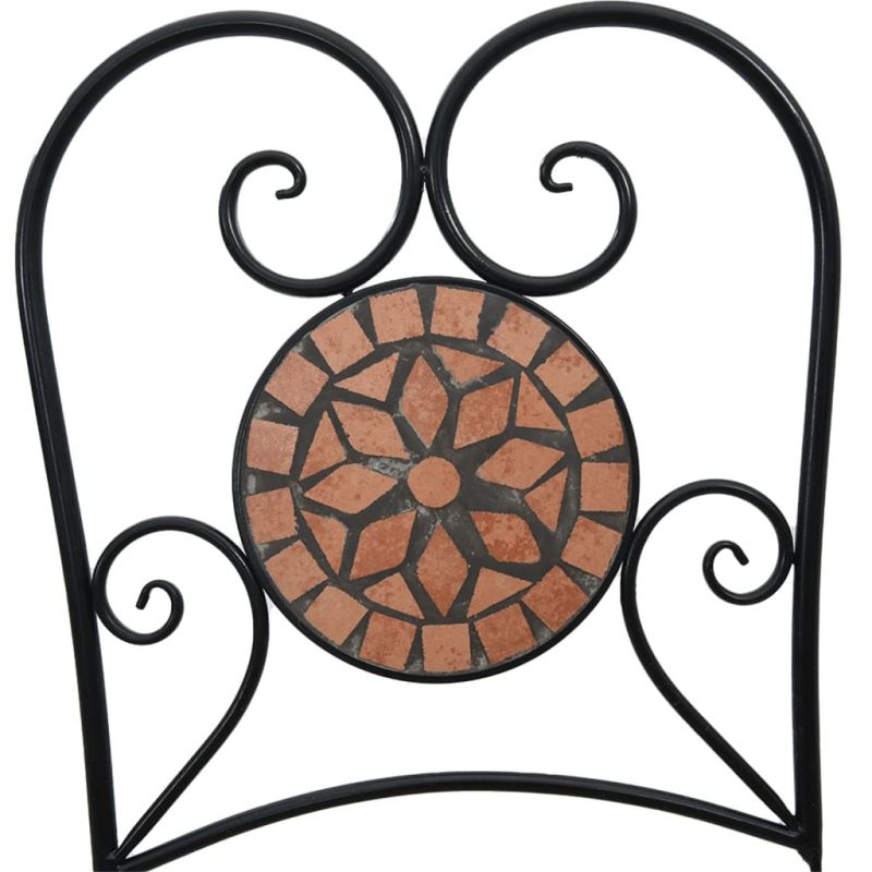 Тези бистро столове с мозаечен дизайн ще се превърнат във фокусна точка на вашата градина, балкон или вътрешен двор. Стабилен и лесен за почистване плот: Тези градински столове имат керамичен плот, който е здрав, издръжлив и лесен за почистване с влажна кърпа.Здрава и стабилна рамка: Желязната рамка с прахово покритие гарантира, че сгъваемите столове са здрави и стабилни за ежедневна употреба на закрито или на открито.Сгъваем дизайн: Трапезният стол за бистро може също да се сгъва, за да спести място, когато не се използва.Мозаечен дизайн: Външните столове спомагат за създаването на средиземноморска атмосфера във вашите вътрешни или външни пространства с мозаечния си дизайн. Добре е да се знае:За да сте сигурни, че вашите външни мебели ще останат красиви, ви препоръчваме да ги защитите с водоустойчиво покривало.