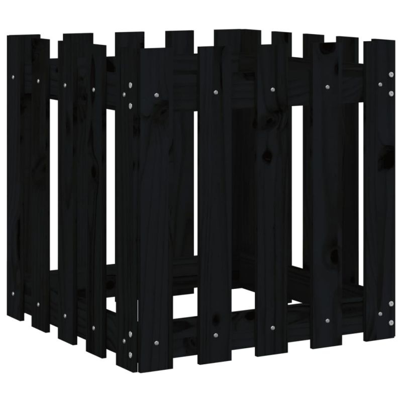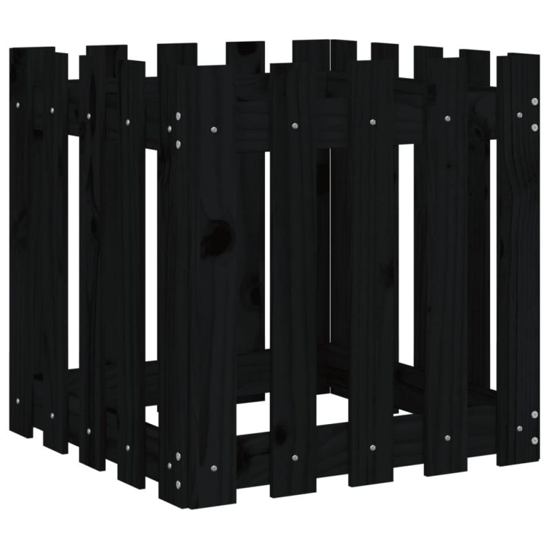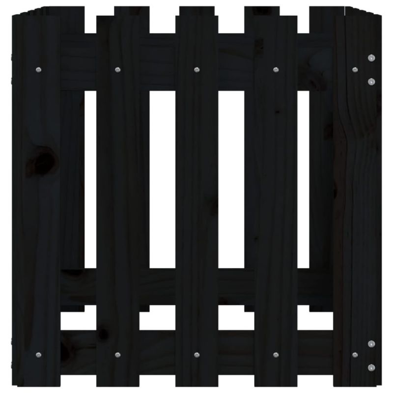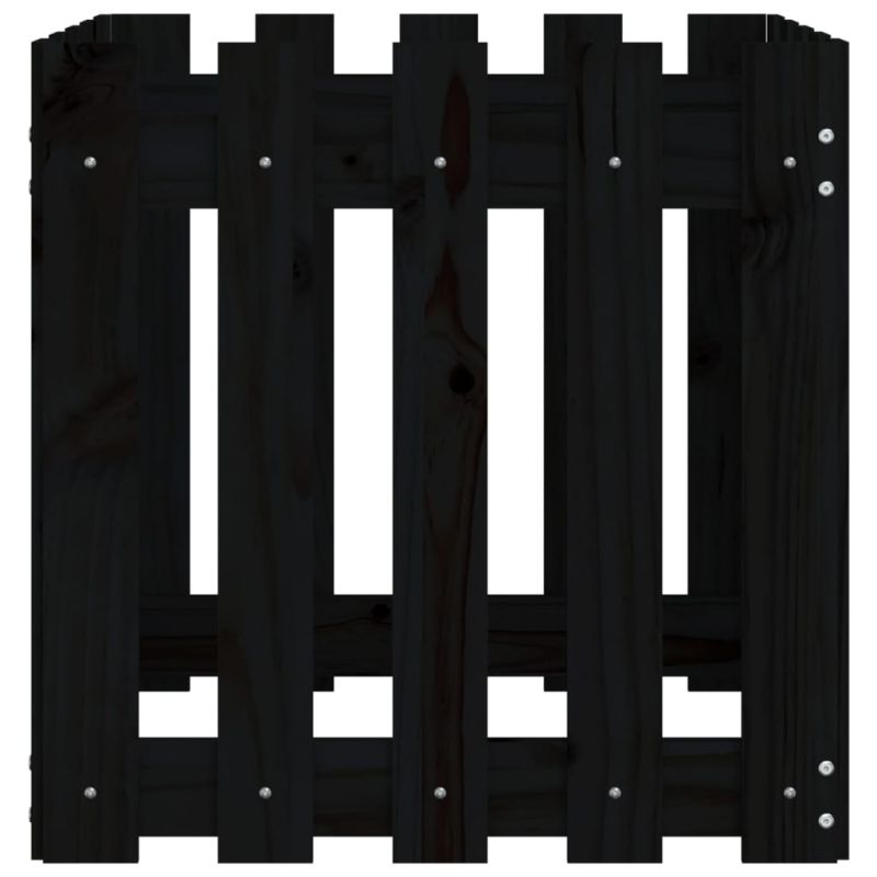 Градинска кашпа с дизайн на ограда черна 50x50x50 см бор масив