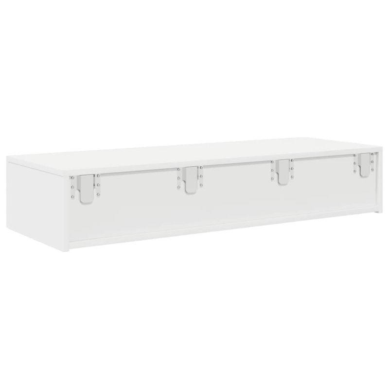 Стенен рафт с чекмеджета, бял, 100x36x19 см, инженерно дърво