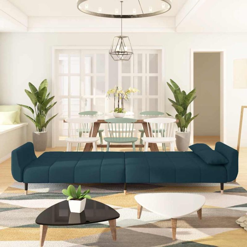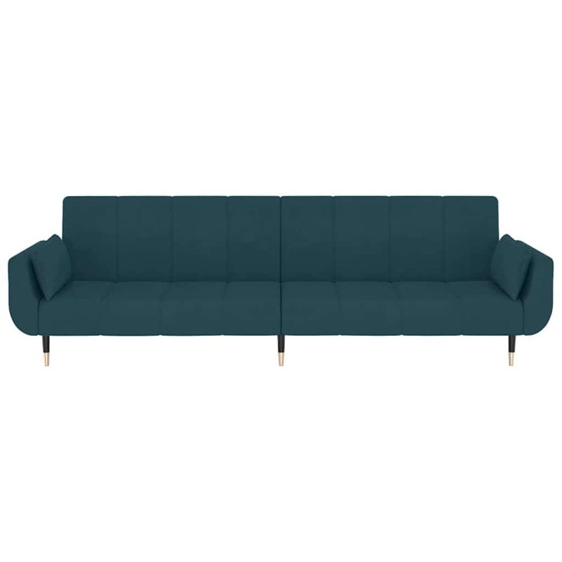 2-местно разтегателно канапе с две възглавници, синьо, кадифе