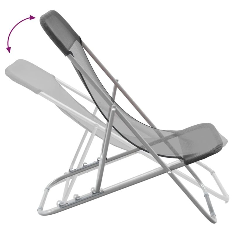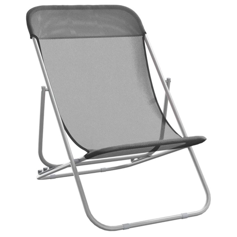 Начало Дом и градина Мебели Външни мебели Външно обзавеждане Шезлонги Сгъваеми плажни столове 2 бр сиви текстилен и стомана