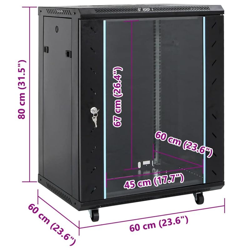 Този мрежов шкаф съчетава индустриален чар с надеждност. Идеален е за офиси и всекидневни. Вдъхновен от лофт стила, разполага с изчистени линии и гладка повърхност, добавяйки стил на всяка декорация. Осигурява безопасно и ефективно място за съхранение на мрежова техника, предназначен е за професионалисти, които искат надеждни и удобни решения за променящата се работна среда. Стилният му дизайн се влива отлично в различни среди, предлагайки комфорт и естетика. Материали: Шкафът е изграден от здрави стомени и закалени стъклени части, които осигуряват здравина и добра видимост на съдържанието. Стоманата предлага здравина, а закаленото стъкло добавя модерен поглед, без да жертва здравината. Включени компоненти: Има заключващи се стоманени дръжки, даващи сигурен достъп, и заключващ механизъм, който защитава деликатната техника. Шкафът е с колела за лесно преместане, идеален за динамични офис среди. Функции / дизайн: Проектиран е да издържа на топлина, предлага надеждна защита, запазвайки безопасността на вътрешното оборудване. Индустриалният му стил и гладката повърхност допълват съвременните офис пространства. Препоръчителни употреби: Перфектен е за организиране на мрежова техника в офис условия. Гладките колела дават възможност за лесно преместена, отговаряща на променящите се офис нужди. Грижа и поддръжка: Поддържането е лесно: избърсвайте с влажна кърпа, за да запазите добрия вид на повърхностите.