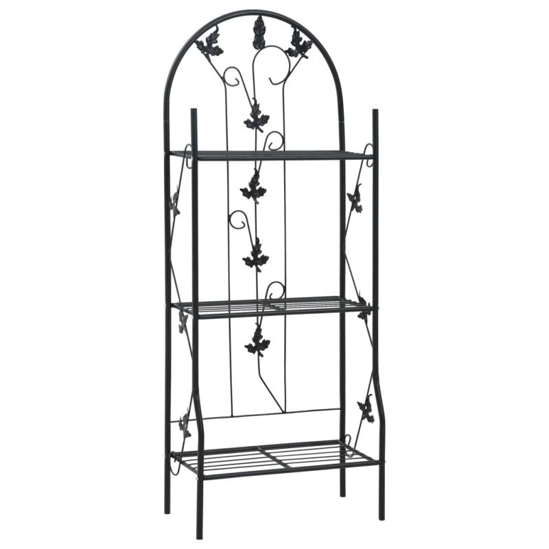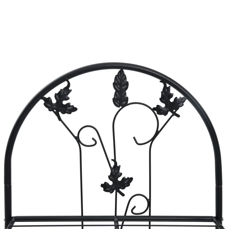Този цветарник, отличаващ се с дизайн на листа, ще добави безграничен чар на вашата градина, вътрешен двор, балкон, тераса или други външни и вътрешни помещения! Изградена от железни тръби и покрита с устойчив на атмосферни влияния черен епоксид, тази стойка за цветя е здрава и лесна за поддръжка. Снабдена е с 3 рафта, предоставящи място за поставянето и нареждането на растения. Освен това този цветарник за саксии се сглобява лесно.