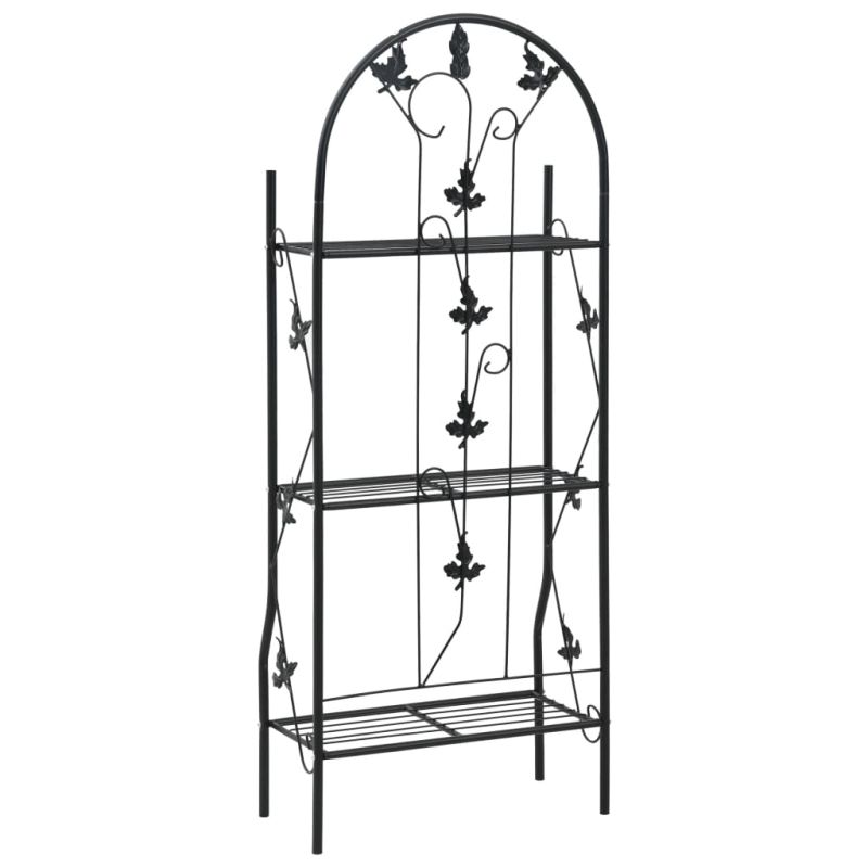 3-етажен цветарник, черен, 52x28x128 см, желязо