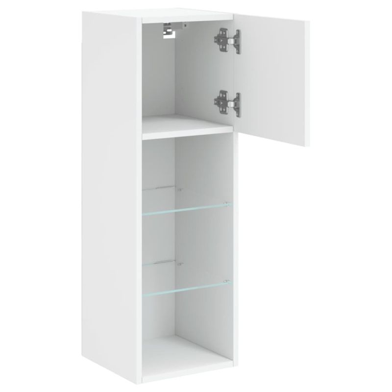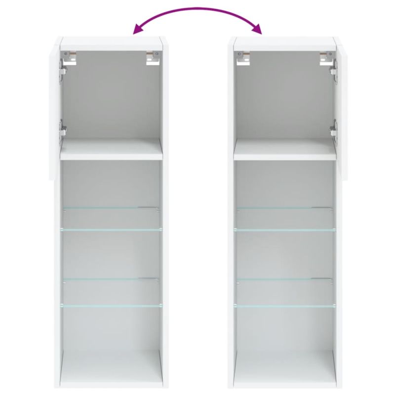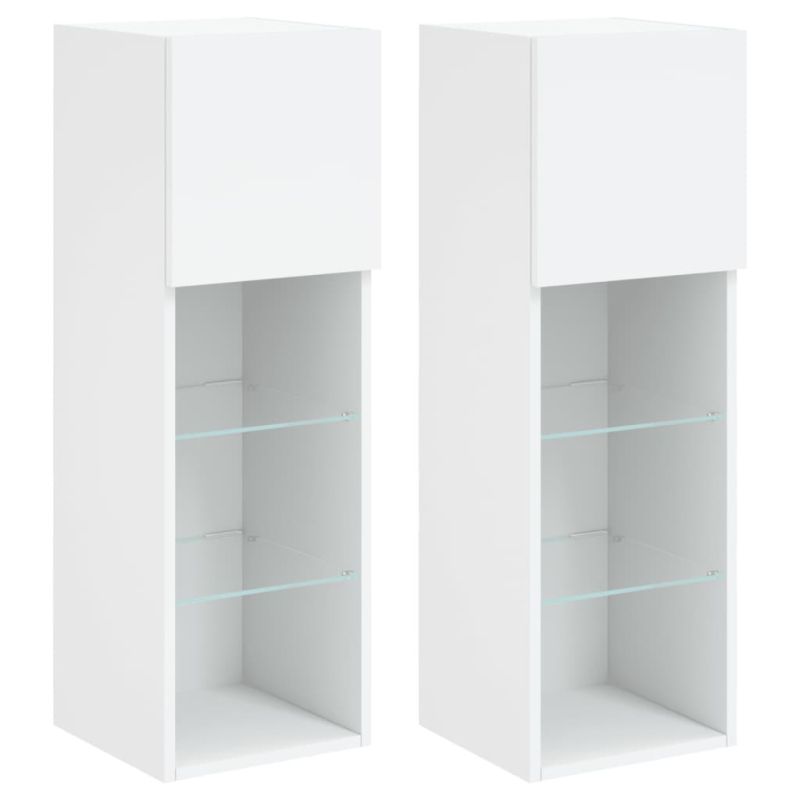 ТВ шкафове с LED осветление, 2 бр, бели, 30,5x30x90 см