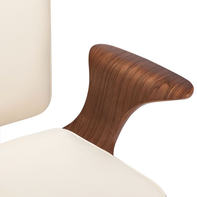 Въртящ се офис стол, кремав, изкуствена кожа и извито дърво