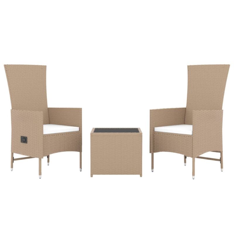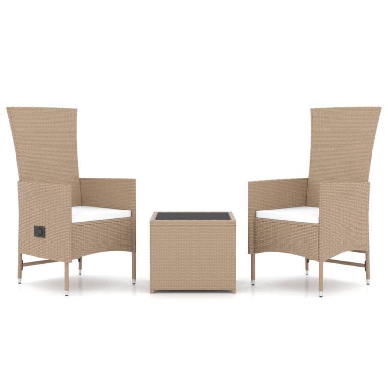 Този градински лаундж комплект с елегантен и съвременен дизайн е чудесен избор за отдих в градината. Издръжлив материал: PE ратан, известен също като полиратан, е устойчив на атмосферни влияния и лесен за почистване. Той остава красив отвън за дълъг период от време. Предлага отлично качество, удобство и естетичен вид.Стабилна рамка: Стоманата е изключително твърд и здрав материал. Затова предлага здравина и стабилност.Функция за накланяне: Градинските столове на този комплект градински мебели са специално проектирани с функция за накланяне, така че да можете да регулирате облегалката според вашето удобство.Удобно седене: С дебело подплатените възглавници на седалката, столовете са много удобни.Практичен плот: Плотът от закалено стъкло е идеален за поставяне или показване на различни необходими предмети. Той е с красива визия и е лесен за почистване. Забележка:За да сте сигурни, че вашите външни мебели ще останат красиви, ви препоръчваме да ги защитите с водоустойчиво покривало. Добре е да се знае:За да бъде сглобяването възможно най-лесно, всеки продукт се доставя с ръководство. Максимално 110 кг на седалка. Съобразете се с риска от открит огън и други източници на силна топлина в близост до продукта.