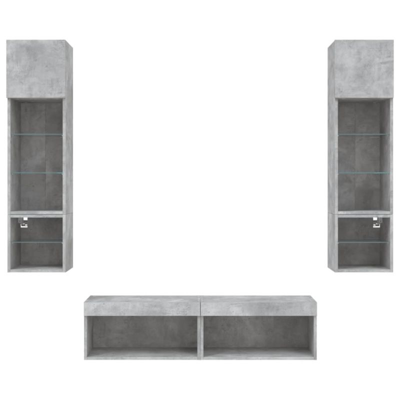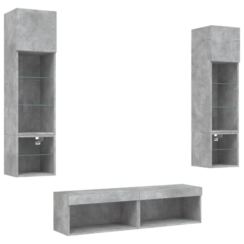 Начало Дом и градина Мебели Секции и поставки за телевизори ТВ стенни модули с LED, 6 части, бетонно сиви, инженерно дърво