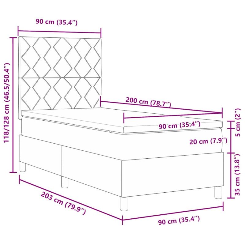Легло с пружинирана основа Тъмен сив 90 x 200 cm текстил