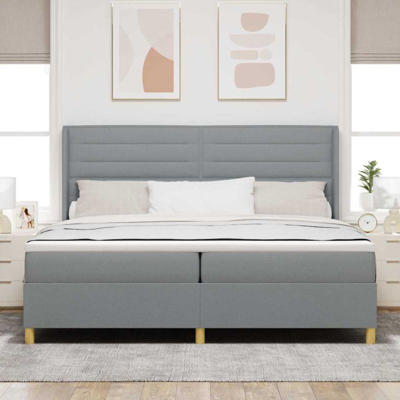 Легло с пружинирана основа Светлосиво 200 x 200 cm текстил