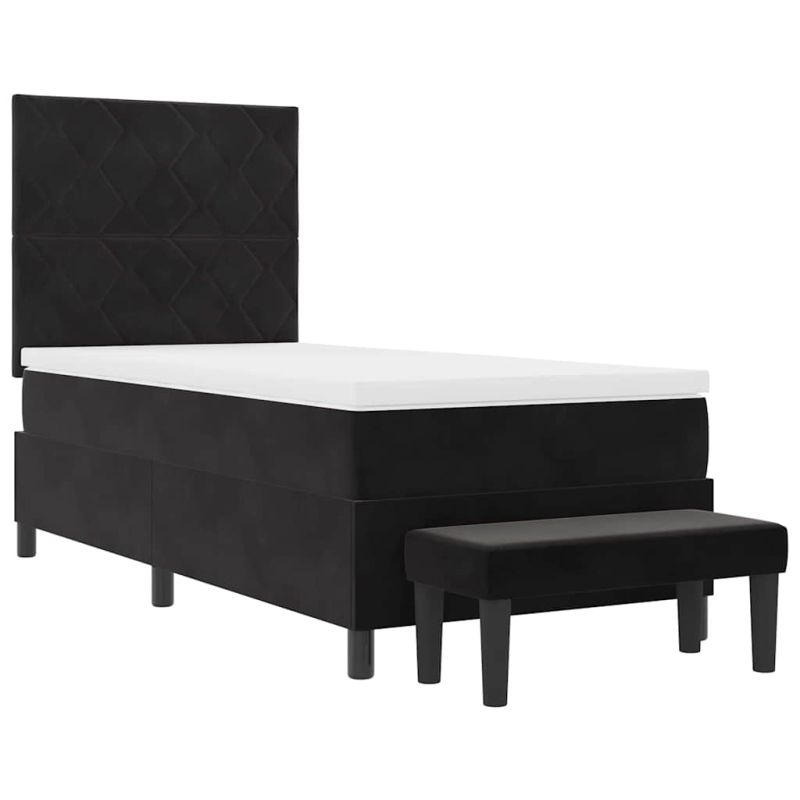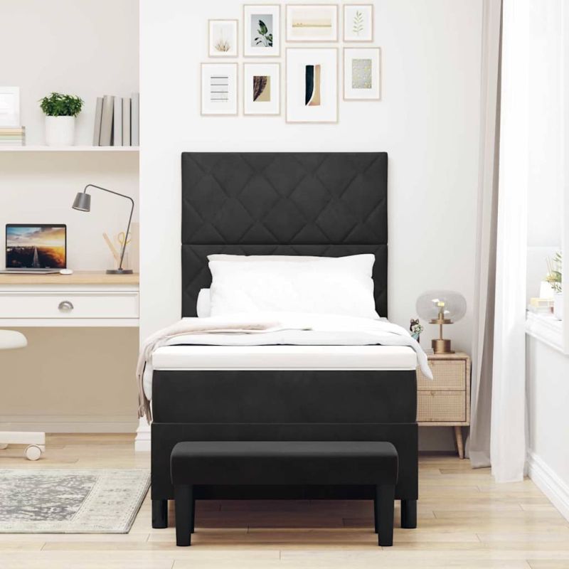 Легло с пружинирана основа с матрак Черно 90 x 190 cm Кадифе
