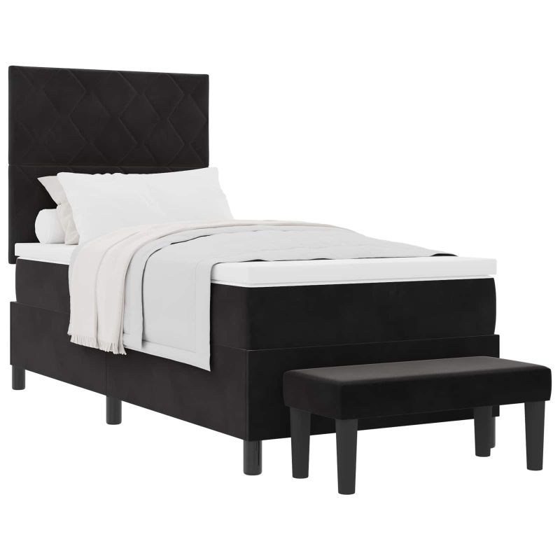 Легло с пружинирана основа с матрак Черно 90 x 200 cm Кадифе