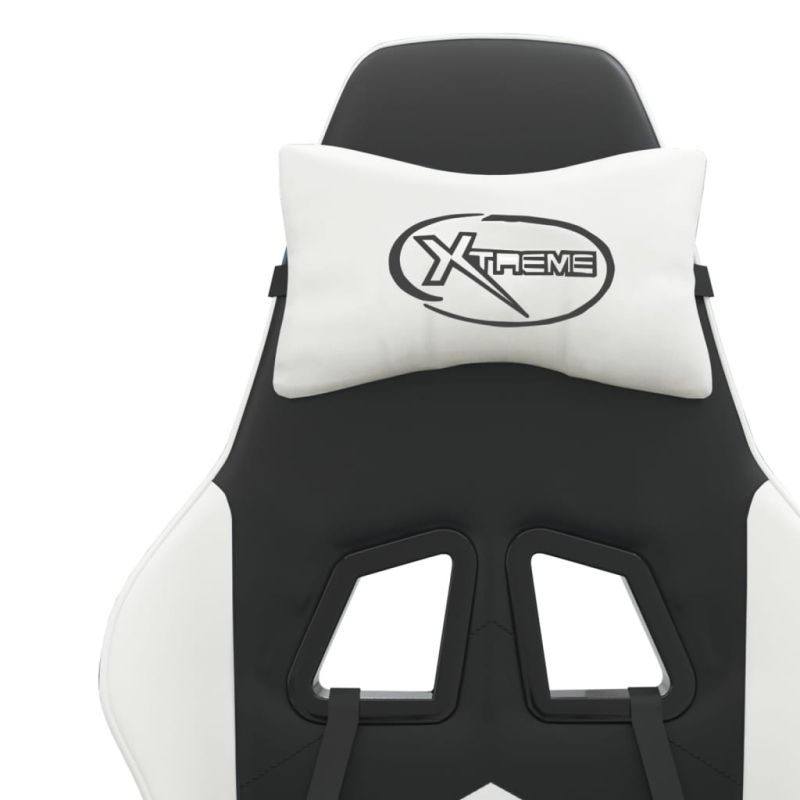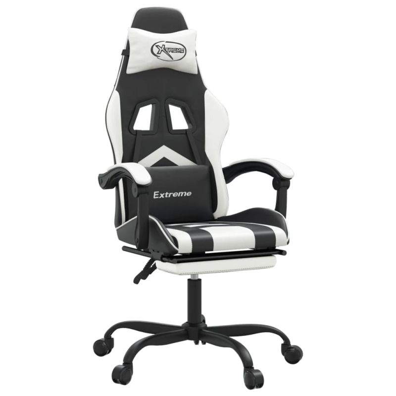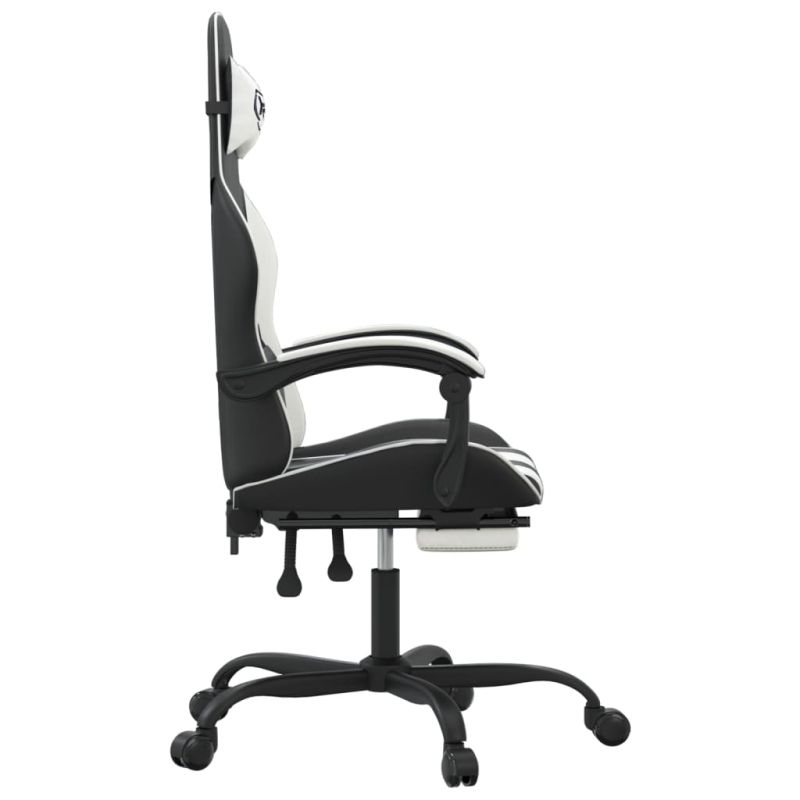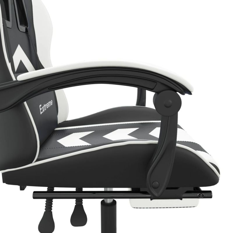 Въртящ гейминг стол с опора за крака черно-бял изкуствена кожа