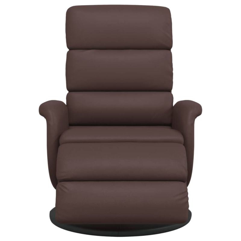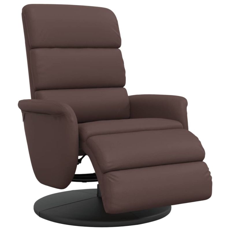 Търсите стол за пълноценна почивка след натоварен ден? Този удобен фотьойл за облягане е идеалният избор! Функция за ръчно накланяне: Този накланящ се стол е специално проектиран с функция за накланяне, така че да можете да регулирате облегалката и поставката за крака според вашето удобство. Облегалката може да се накланя от 105 до 125 градуса.Завъртане на 360 градуса: Фотьойлът може да се завърта свободно на 360 градуса, което му придава допълнителна гъвкавост.Удобно седене: Дебело подплатената седалка, облегалката, подпората за крака и широките подлакътници, покрити с текстил, осигуряват уютно и топло усещане, което ви кара да се чувствате като в прегръдка, докато седите. Изкуствената кожа е много издръжлив материал. Устойчива е на петна, което я прави лесна за почистване с влажна кърпа. Гладката повърхност също така придава луксозен вид и красотата на естествената кожа.Здрава и стабилна рамка: Рамката, изработена от шперплат и метал, осигурява здрава структура и стабилност. Този накланящ се фотьойл е удобен и издръжлив.