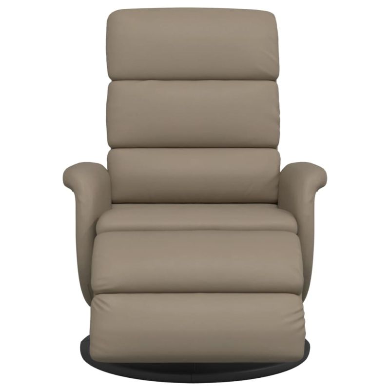 Търсите стол за пълноценна почивка след натоварен ден? Този удобен фотьойл за облягане е идеалният избор! Функция за ръчно накланяне: Този накланящ се стол е специално проектиран с функция за накланяне, така че да можете да регулирате облегалката и поставката за крака според вашето удобство. Облегалката може да се накланя от 105 до 125 градуса.Завъртане на 360 градуса: Фотьойлът може да се завърта свободно на 360 градуса, което му придава допълнителна гъвкавост.Удобно седене: Дебело подплатената седалка, облегалката, подпората за крака и широките подлакътници, покрити с текстил, осигуряват уютно и топло усещане, което ви кара да се чувствате като в прегръдка, докато седите. Изкуствената кожа е много издръжлив материал. Устойчива е на петна, което я прави лесна за почистване с влажна кърпа. Гладката повърхност също така придава луксозен вид и красотата на естествената кожа.Здрава и стабилна рамка: Рамката, изработена от шперплат и метал, осигурява здрава структура и стабилност. Този накланящ се фотьойл е удобен и издръжлив.