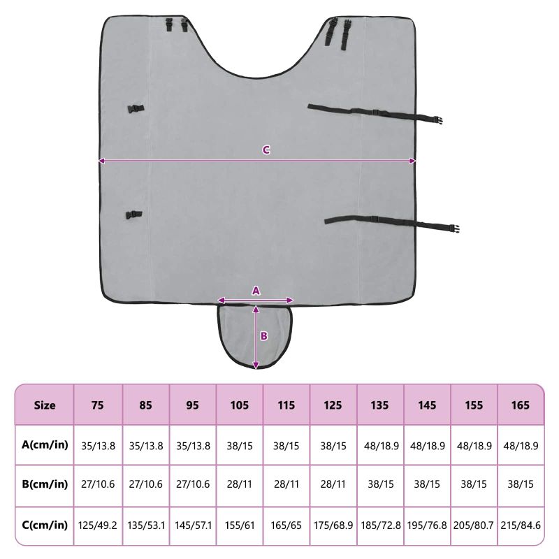 Това конско одеяло съчетава модерен стил с практичност, за да осигури на вашия кон топлина през зимата. Изработено е от здрав полиестер, с мека велурена текстура, която придава луксозен вид. С елегантен дизайн, този продукт е за външна употреба и предлага комфорт за коня сред природата без лишения. Плътното прилягане е идеално, за да държи коня уютен. Материал: Одеялото е от полиестер и предлага голяма издръжливост и устойчивост на неблагоприятни условия. Велурената текстура не само придава лукс, но и осигурява максимален комфорт и топлина без дразнене. Сменяем калъф: Лесно свалящият се калъф прави почистването изключително удобно. Просто свалете калъфа и го изперете на 30 градуса - идеално решение за поддръжка и хигиена. Регулиране: Одеялото е с разглобяеми части, което позволява настройка спрямо размера на коня. Осигурява отлично прилягане и защита от студен въздух. Зимна употреба: Специално проектирано за зимата, това одеяло помага на коня да остане топъл и осигурява нужната изолация. Лесна поддръжка: Поради периметъра, който е за пране и лесния разглобяем дизайн, поддържането на комфорт е просто и ефективно.