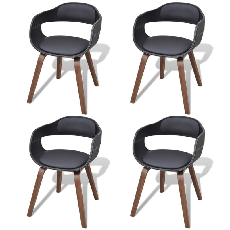 Трапезни столове, 4 бр, черни, извито дърво и изкуствена кожа