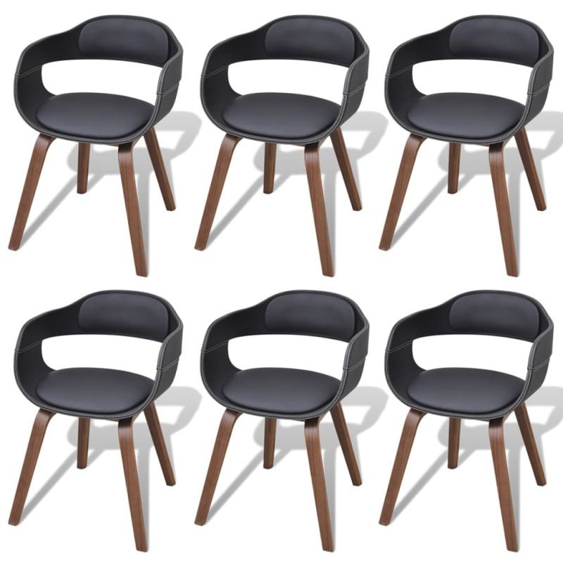 Трапезни столове, 6 бр, черни, извито дърво и изкуствена кожа