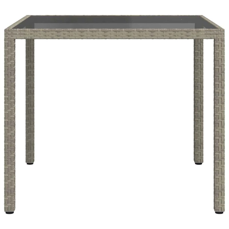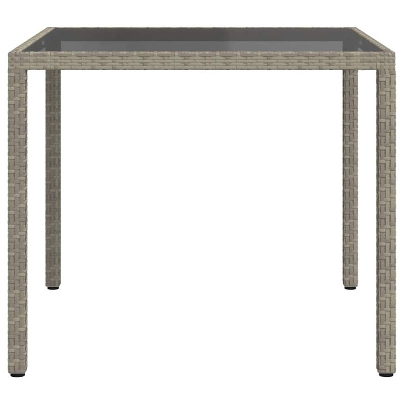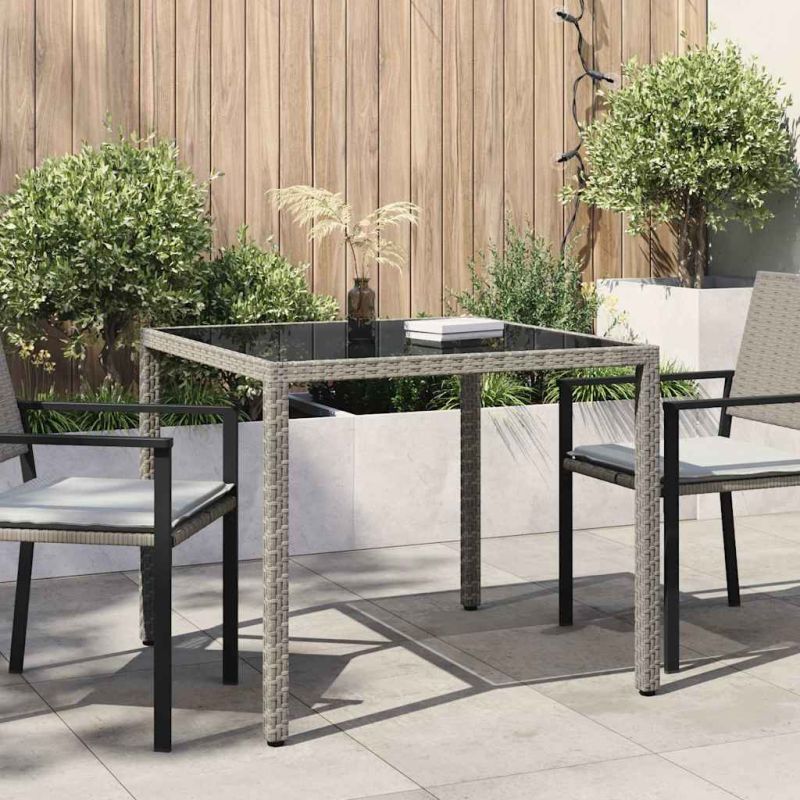 Градинска маса, 90x90x75 см, закалено стъкло и полиратан, сива