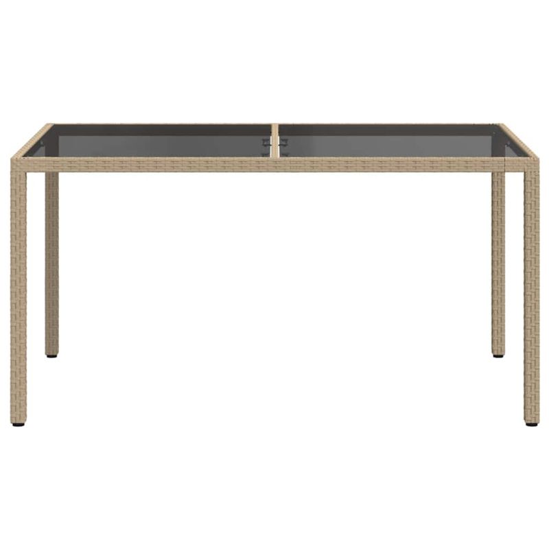 Градинска маса 150x90x75 см закалено стъкло и полиратан бежова