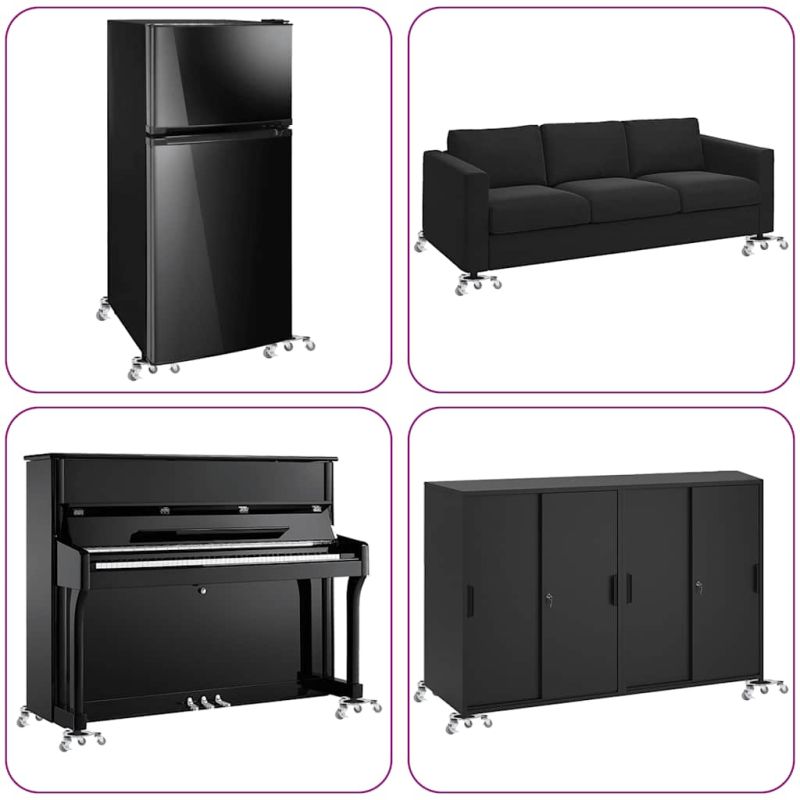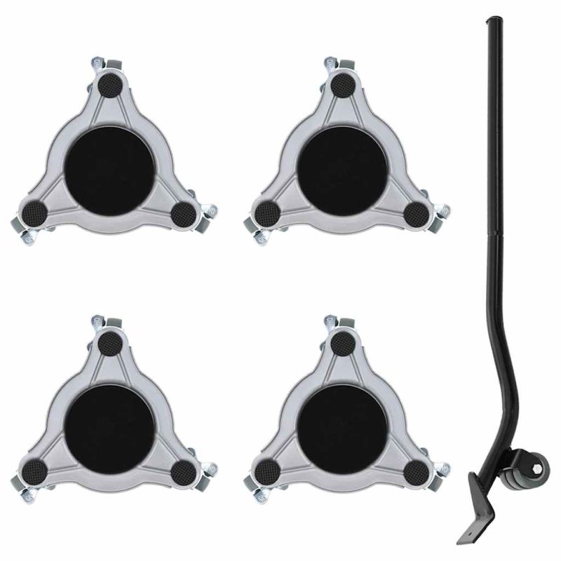 Тези мебелни колелца улесняват преместването на тежки предмети като дивани и хладилници, позволявайки бързо пренареждане, като същевременно намаляват натоварването на гърба ви. Здрава и стабилна: Стоманената рамка е впечатлена със своята здравина, издръжливост и устойчивост на корозия, което я прави идеален избор за различни приложения, включително производство на мебели и строителство.Противоплъзгащи подложки: Мебелното ролко е проектирано с противоплъзгащи подложки в центъра и в три ъгъла, осигуряващи омекотена опора и гарантиращи, че вашите ценни предмети ще останат защитени от надраскване по време на движение.360° въртящи се колелца: 4-те гумени колелца са проектирани с 360° въртящи се сачмени лагери, осигуряващи плавно, тихо и без усилие движение. За допълнителна стабилност, три от колелцата са заключващи се, като държат мебелите ви сигурно на място.Лесни за употреба: Комплектът за преместване на мебели включва повдигач с дълга щанга, който ви позволява лесно да повдигате мебели, което улеснява плъзгането на количката с колелца отдолу. Тази функция предлага удобно и лесно решение за преместване на тежки предмети.Широки приложения: Количката с крака е идеална за широка гама от мебели, от дивани до шкафове, което я прави перфектна за употреба у дома, в офиса или в работилници.