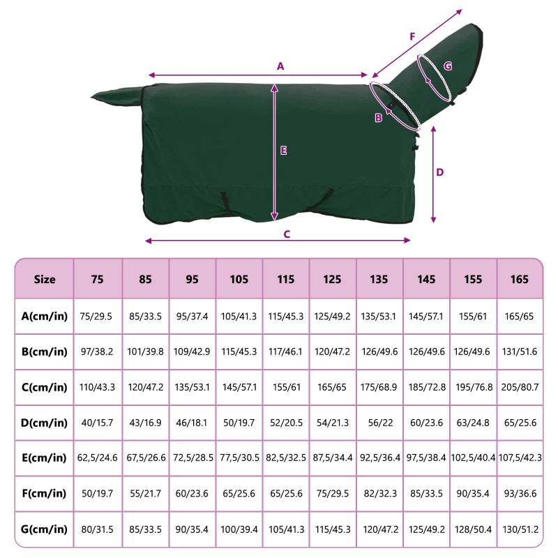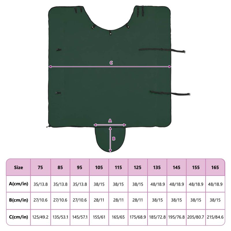 Това конско одеяло съчетава модерен стил с практичност, за да осигури на вашия кон топлина през зимата. Изработено е от здрав полиестер, с мека велурена текстура, която придава луксозен вид. С елегантен дизайн, този продукт е за външна употреба и предлага комфорт за коня сред природата без лишения. Плътното прилягане е идеално, за да държи коня уютен. Материал: Одеялото е от полиестер и предлага голяма издръжливост и устойчивост на неблагоприятни условия. Велурената текстура не само придава лукс, но и осигурява максимален комфорт и топлина без дразнене. Сменяем калъф: Лесно свалящият се калъф прави почистването изключително удобно. Просто свалете калъфа и го изперете на 30 градуса - идеално решение за поддръжка и хигиена. Регулиране: Одеялото е с разглобяеми части, което позволява настройка спрямо размера на коня. Осигурява отлично прилягане и защита от студен въздух. Зимна употреба: Специално проектирано за зимата, това одеяло помага на коня да остане топъл и осигурява нужната изолация. Лесна поддръжка: Поради периметъра, който е за пране и лесния разглобяем дизайн, поддържането на комфорт е просто и ефективно.