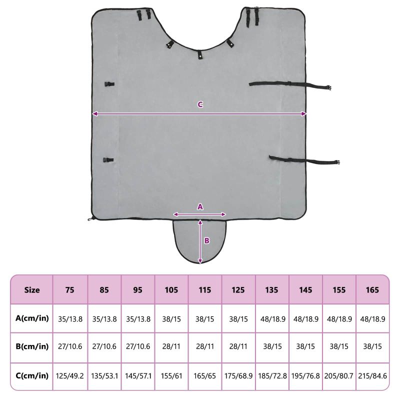 Това конско одеяло съчетава модерен стил с практичност, за да осигури на вашия кон топлина през зимата. Изработено е от здрав полиестер, с мека велурена текстура, която придава луксозен вид. С елегантен дизайн, този продукт е за външна употреба и предлага комфорт за коня сред природата без лишения. Плътното прилягане е идеално, за да държи коня уютен. Материал: Одеялото е от полиестер и предлага голяма издръжливост и устойчивост на неблагоприятни условия. Велурената текстура не само придава лукс, но и осигурява максимален комфорт и топлина без дразнене. Сменяем калъф: Лесно свалящият се калъф прави почистването изключително удобно. Просто свалете калъфа и го изперете на 30 градуса - идеално решение за поддръжка и хигиена. Регулиране: Одеялото е с разглобяеми части, което позволява настройка спрямо размера на коня. Осигурява отлично прилягане и защита от студен въздух. Зимна употреба: Специално проектирано за зимата, това одеяло помага на коня да остане топъл и осигурява нужната изолация. Лесна поддръжка: Поради периметъра, който е за пране и лесния разглобяем дизайн, поддържането на комфорт е просто и ефективно.