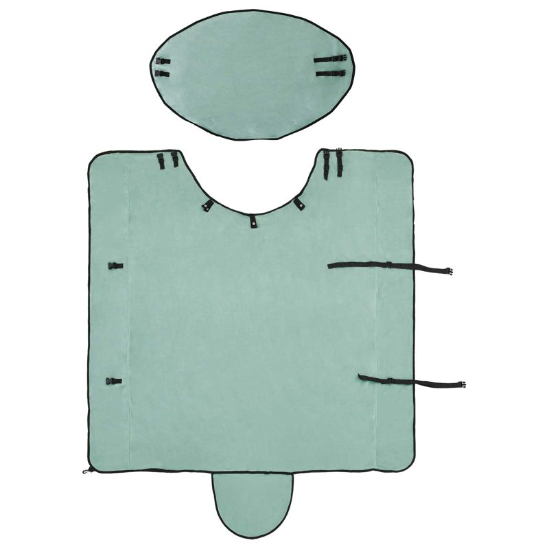 Това конско одеяло съчетава модерен стил с практичност, за да осигури на вашия кон топлина през зимата. Изработено е от здрав полиестер, с мека велурена текстура, която придава луксозен вид. С елегантен дизайн, този продукт е за външна употреба и предлага комфорт за коня сред природата без лишения. Плътното прилягане е идеално, за да държи коня уютен. Материал: Одеялото е от полиестер и предлага голяма издръжливост и устойчивост на неблагоприятни условия. Велурената текстура не само придава лукс, но и осигурява максимален комфорт и топлина без дразнене. Сменяем калъф: Лесно свалящият се калъф прави почистването изключително удобно. Просто свалете калъфа и го изперете на 30 градуса - идеално решение за поддръжка и хигиена. Регулиране: Одеялото е с разглобяеми части, което позволява настройка спрямо размера на коня. Осигурява отлично прилягане и защита от студен въздух. Зимна употреба: Специално проектирано за зимата, това одеяло помага на коня да остане топъл и осигурява нужната изолация. Лесна поддръжка: Поради периметъра, който е за пране и лесния разглобяем дизайн, поддържането на комфорт е просто и ефективно.