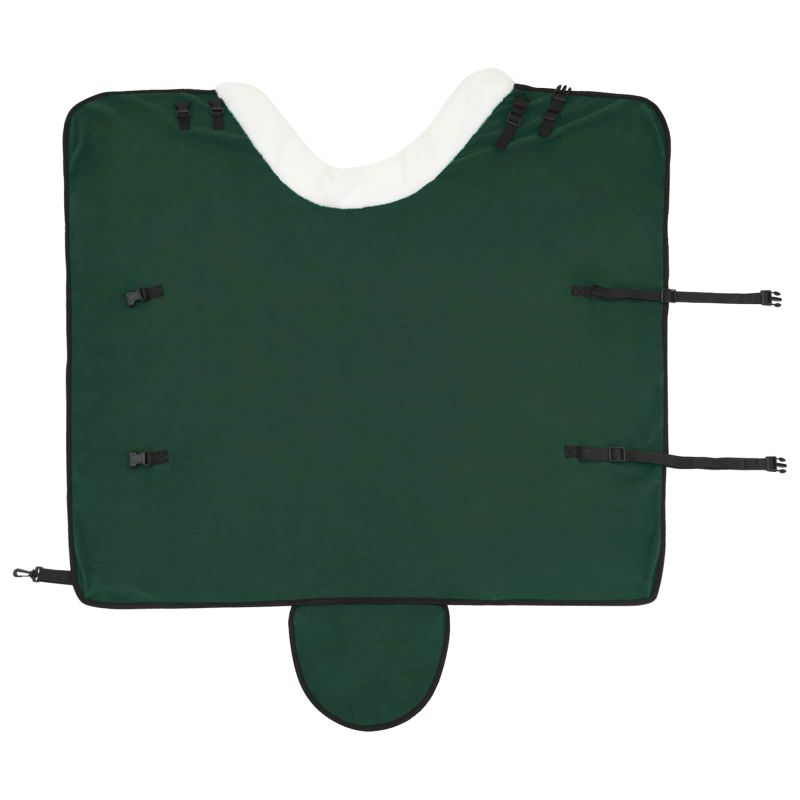 Това конско наметало е проектирано така, че да осигурява топлина и защита на конете в хладно време. Със своите чисти линии и минималистичен дизайн, то съчетава функционалност и стил. Дали е студен зимен ден или след дълъг труден ден, вашият кон винаги ще е уютен и комфортен с това флийсово наметало. Качествен полар: Направено от висококачествен полар, нашето наметало предлага топлина и мекота. Поларът е лек и позволява на коня да се движи свободно. С отлична изолация, то е надежден избор дори в най-студеното време. Функционални катарами: Разполага с регулируеми катарами, които осигуряват удобно прилягане, подходящо за всеки кон. Сигурното прилягане добавя удобство и безопасност, а рискът на наметалото да се събере е минимален. Това осигурява спокойствие, когато конят е навън. Многофункционален калъф: Сваляемият калъф прави поддръжката лесна. Може да се свали и да се пере в пералня на 30 градуса, така че наметалото оставя свежо и чисто без усилия. Значи, по-малко притеснения относно чистотата и повече време за забавления с вашия кон. Защита от времето: С ветроустойчива конструкция, наметалото защитава и в лошо време. То е устойчиво на бурти и осигурява удобно и защитено място за вашия кон. Сложността и издръжливостта му го правят отличен избор юзда през зимата. Практична функция за съхранение: Сгъваемият дизайн улеснява съхранението, когато не се използва. Бързо се сгъва, спестявайки място и лесно се съхранява. Това е супер решение за ограничени пространства.”