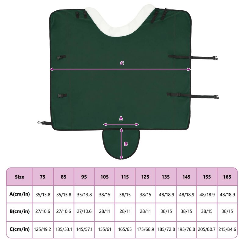 Това конско наметало е проектирано така, че да осигурява топлина и защита на конете в хладно време. Със своите чисти линии и минималистичен дизайн, то съчетава функционалност и стил. Дали е студен зимен ден или след дълъг труден ден, вашият кон винаги ще е уютен и комфортен с това флийсово наметало. Качествен полар: Направено от висококачествен полар, нашето наметало предлага топлина и мекота. Поларът е лек и позволява на коня да се движи свободно. С отлична изолация, то е надежден избор дори в най-студеното време. Функционални катарами: Разполага с регулируеми катарами, които осигуряват удобно прилягане, подходящо за всеки кон. Сигурното прилягане добавя удобство и безопасност, а рискът на наметалото да се събере е минимален. Това осигурява спокойствие, когато конят е навън. Многофункционален калъф: Сваляемият калъф прави поддръжката лесна. Може да се свали и да се пере в пералня на 30 градуса, така че наметалото оставя свежо и чисто без усилия. Значи, по-малко притеснения относно чистотата и повече време за забавления с вашия кон. Защита от времето: С ветроустойчива конструкция, наметалото защитава и в лошо време. То е устойчиво на бурти и осигурява удобно и защитено място за вашия кон. Сложността и издръжливостта му го правят отличен избор юзда през зимата. Практична функция за съхранение: Сгъваемият дизайн улеснява съхранението, когато не се използва. Бързо се сгъва, спестявайки място и лесно се съхранява. Това е супер решение за ограничени пространства.”