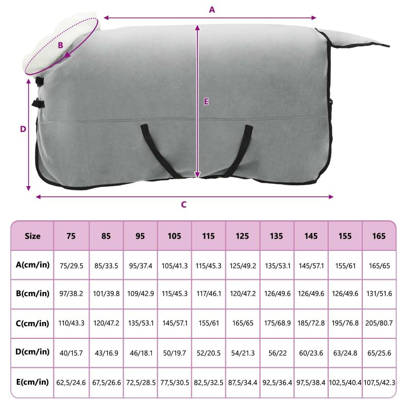 Това конско наметало е проектирано така, че да осигурява топлина и защита на конете в хладно време. Със своите чисти линии и минималистичен дизайн, то съчетава функционалност и стил. Дали е студен зимен ден или след дълъг труден ден, вашият кон винаги ще е уютен и комфортен с това флийсово наметало. Качествен полар: Направено от висококачествен полар, нашето наметало предлага топлина и мекота. Поларът е лек и позволява на коня да се движи свободно. С отлична изолация, то е надежден избор дори в най-студеното време. Функционални катарами: Разполага с регулируеми катарами, които осигуряват удобно прилягане, подходящо за всеки кон. Сигурното прилягане добавя удобство и безопасност, а рискът на наметалото да се събере е минимален. Това осигурява спокойствие, когато конят е навън. Многофункционален калъф: Сваляемият калъф прави поддръжката лесна. Може да се свали и да се пере в пералня на 30 градуса, така че наметалото оставя свежо и чисто без усилия. Значи, по-малко притеснения относно чистотата и повече време за забавления с вашия кон. Защита от времето: С ветроустойчива конструкция, наметалото защитава и в лошо време. То е устойчиво на бурти и осигурява удобно и защитено място за вашия кон. Сложността и издръжливостта му го правят отличен избор юзда през зимата. Практична функция за съхранение: Сгъваемият дизайн улеснява съхранението, когато не се използва. Бързо се сгъва, спестявайки място и лесно се съхранява. Това е супер решение за ограничени пространства.”