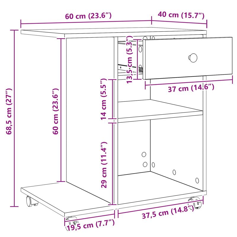 • Общи размери: 60 x 40 x 68,5 см (Д x Ш x В)