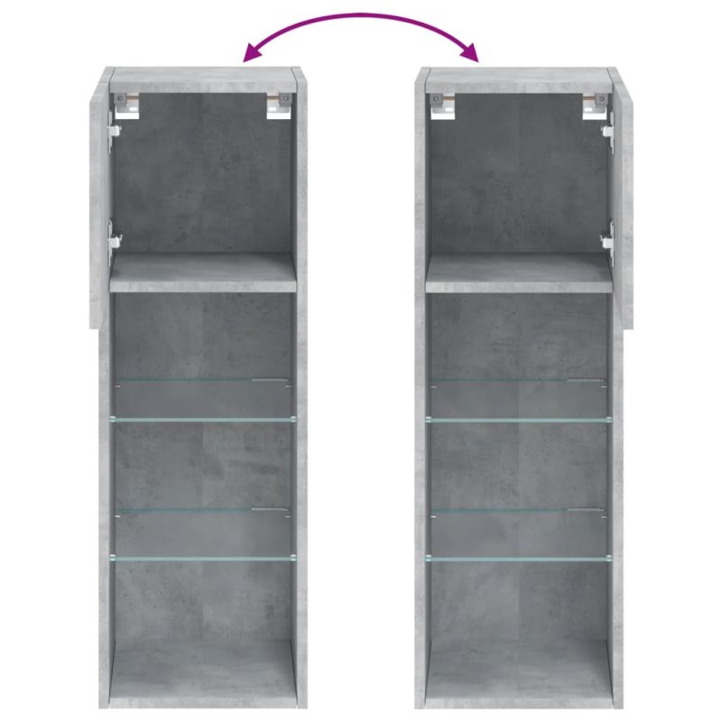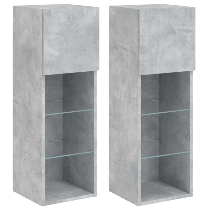 ТВ шкафове с LED осветление 2 бр бетонно сиви 30,5x30x90 см