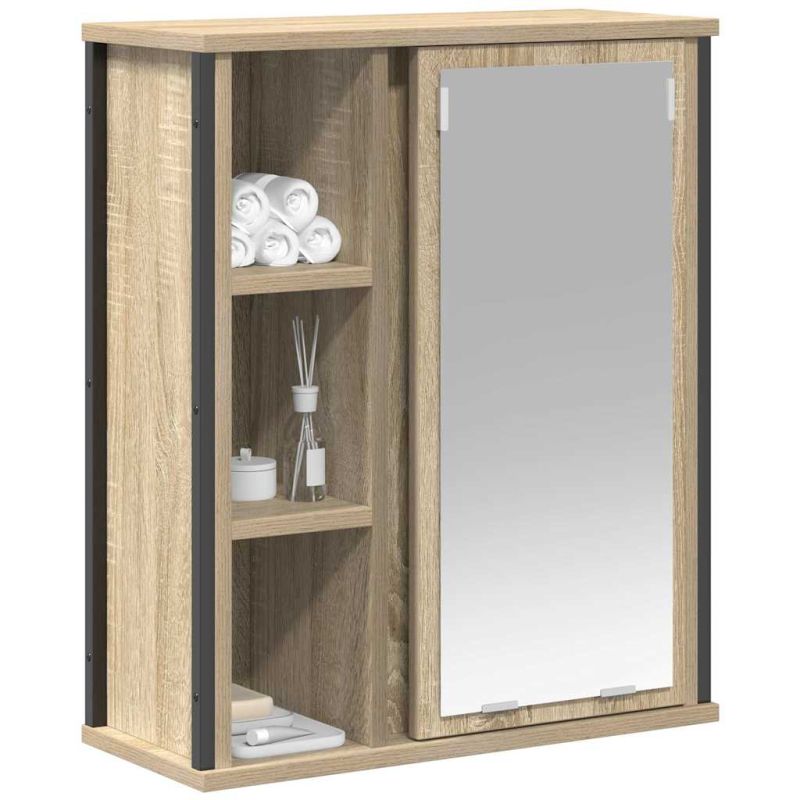 Шкаф за баня с огледало, дъб сонома, 50x21x60 см