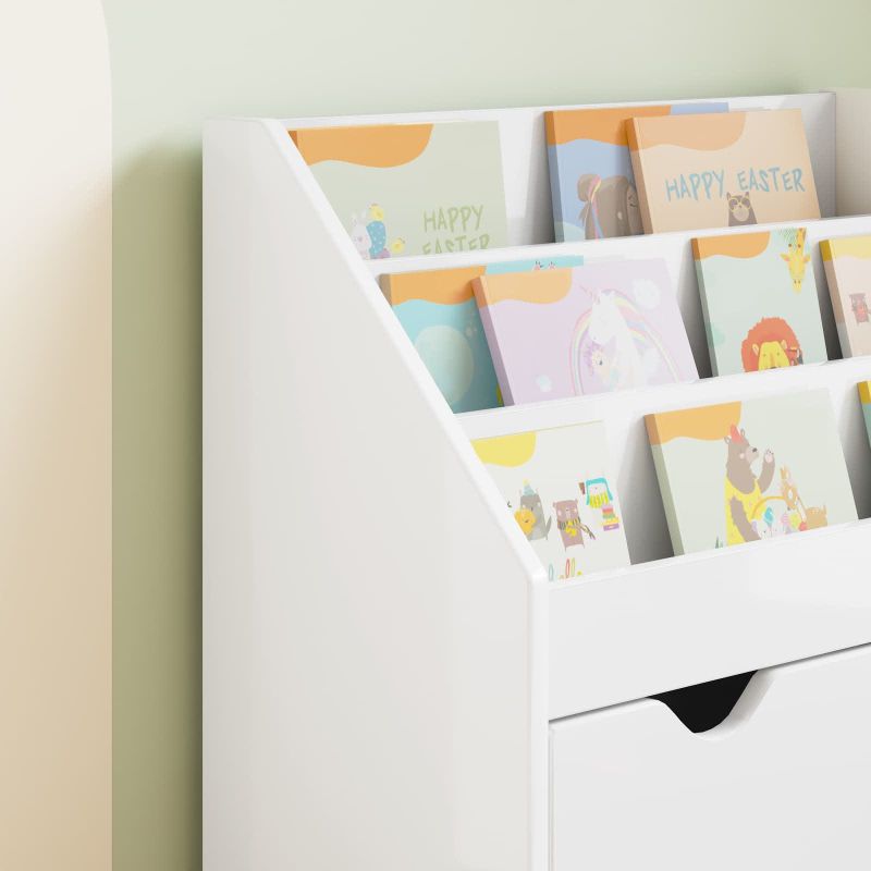 Този рафт за книги е направен с внимание, комбинирайки простота и функционалност, което го прави отлично допълнение към всяка детска стая. Свободностоящият му дизайн с чисти линии и гладка повърхност му придава елегантен вид, който се вписва прекрасно в различни домашни обстановки, независимо дали става въпрос за спални, игрални стаи или учебни кътове. Здрав инженерна дървесина: Този рафт е направен от инженерна дървесина, известна с дълготрайността си. Гладката текстура придава стилен вид и гарантира дълго време ползване в детската стая. Достатъчно място за съхранение: С иновативни решения за организиране, рафтът включва отделения и чекмеджета за книги и играчки. Освен това оптимизира съхранението, без да губи компактния си размер. Свободностоящ дизайн: Това означава, че рафтът може да стои самостоятелно и да се поставя навсякъде в стаята, без нужда от стена. Универсалният дизайн позволява лесно вписване в различни пространства. Детски безопасен: Създаден с деца на ум, рафтът предлага лесен достъп до рафтовете, което насърчава организация и независимост. С нежни извивки и стабилна основа, той осигурява безопасна среда за вашите малчугани. Лесно сглобяване: За сглобяването на рафта са нужни само базови инструменти. Двама хора лесно могат да го сглобят и да осигурят стабилна и сигурна инсталация, минимизирайки риска от преобръщане. Процесът е бърз и води до красиво готово парче, което пасва на всякакъв стил.