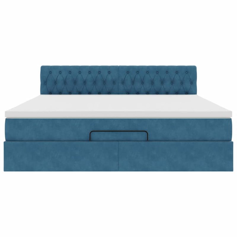 Османска легло с матрак, тъмносиньо, 160x200 см, кадифе