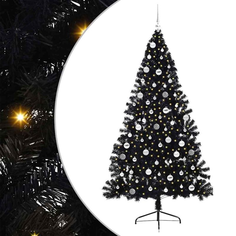 Изкуствена коледна елха с подсветка Черно 210 cm ПВЦ