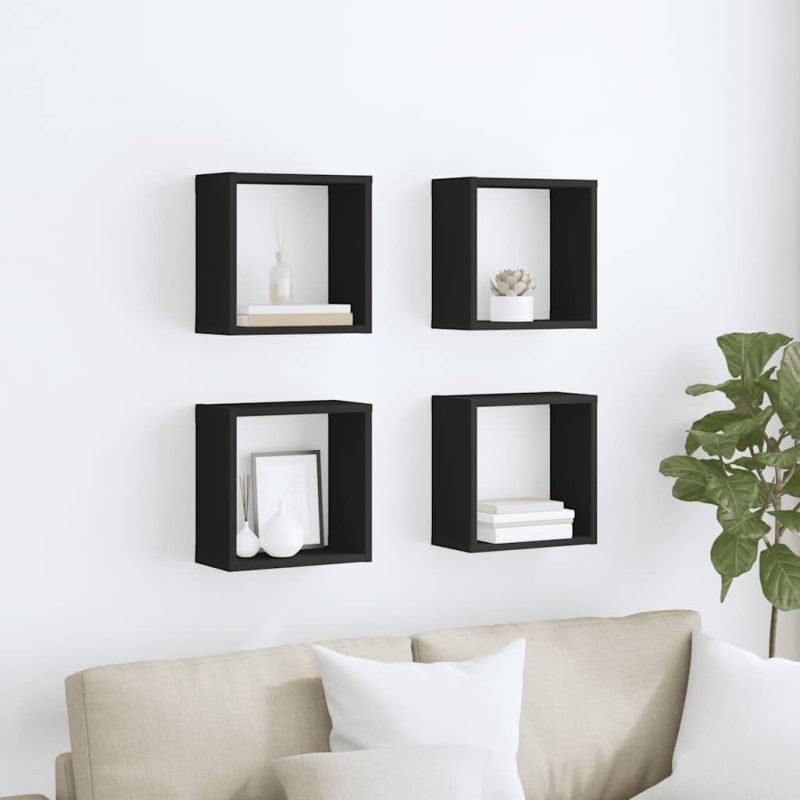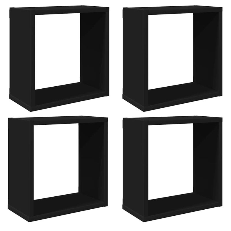 Стенни кубични рафтове, 4 бр, черни, 30x15x30 см