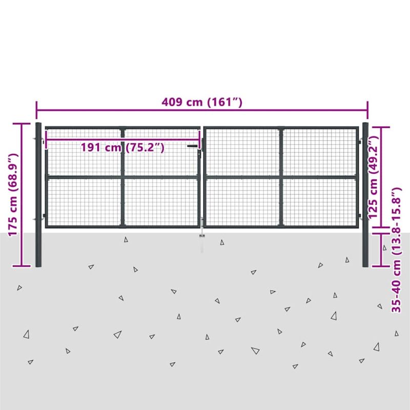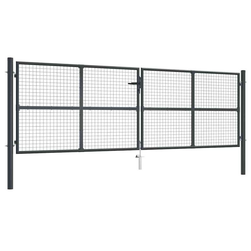 Отличаваща се с високо ниво на стабилност и издръжливост, тази дворна порта може да се използва като практичен и модерен вход към вашата градина, вътрешен двор или тераса! Дворната врата е с перфектна изработка и е произведена от прахово боядисана поцинкована стомана, която е устойчива на ръжда и образува здрава конструкция. Тя има два странични стълба с шарнирни болтове за лесен монтаж. Също така има и долно сюрме, което гарантира доброто заключване на вратата. Доставката включва и три ключа.