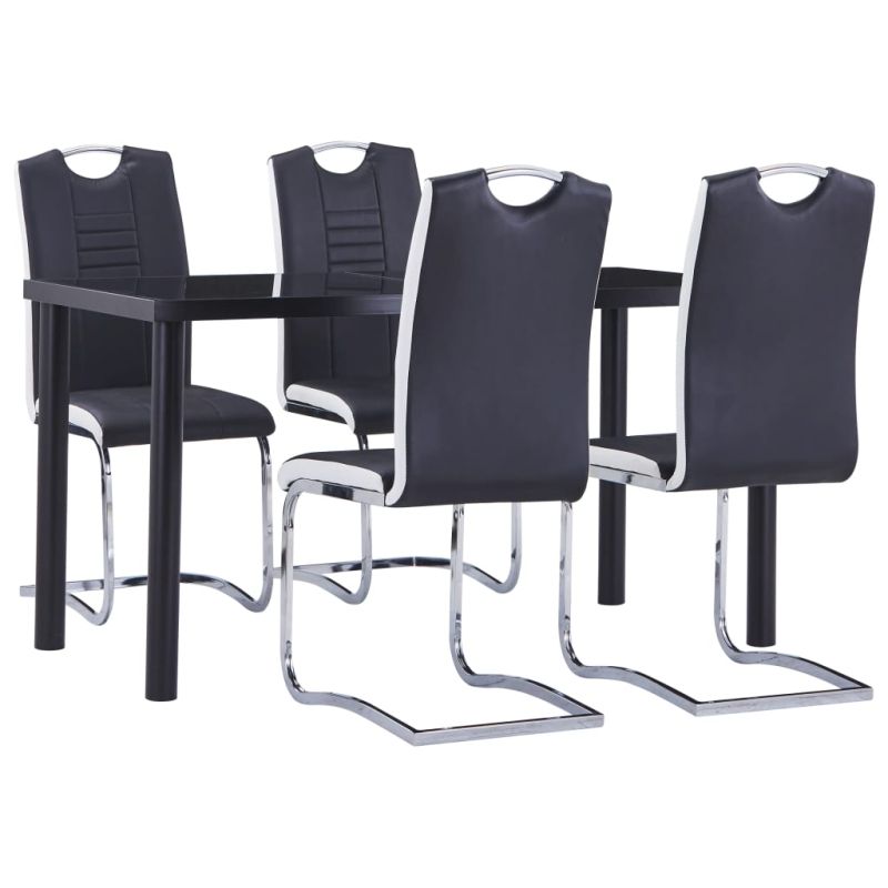Трапезен комплект от 5 части, изкуствена кожа, черен
