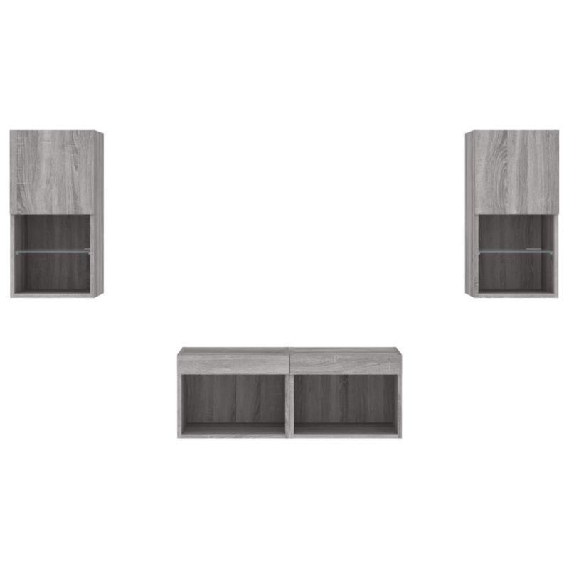 ТВ стенни шкафове, 4 части, с LED светлини, сив сонома